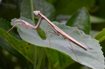 | 【生態等】 | ・カマキリ目カマキリ科。 ・本州、四国、九州、南西諸島に分布。成虫が見られる時期は8〜11月。 ・体長70-95mm。 ・林の中や草原に多く見られる。体は緑色またはかっ色で、後ろばねにむらさき色のもようがある。 |