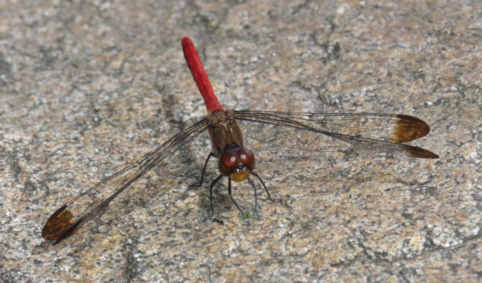・翅の斑紋(模様)は、ノシメトンボ、コノシメトンボ、マユタテアカネの雌に似るが、腹部が赤、胸部が黄色で模様が異なるのが特徴。