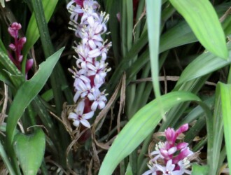 - 花茎は高さ8~12cmになり、淡紅紫色の花が穂状につく。