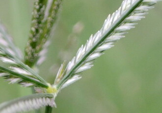 - 花期は8~10月。茎の先に長さ7~12cm、幅4~5mmの花序の枝を2~6本つけ、長さ4~6mmの緑色の小穂を多数つける。小穂は花序の枝に2列に並ぶ。
