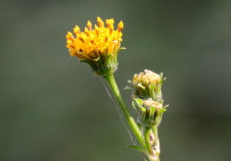 - 花期は9~11月。枝先に直径約5mmの黄色の頭状花(柄の無い花が集まったもの)をつける。頭状花は管状花のみ。実はそう果で、熟すと球状になる。先端に2~3本の刺状の冠毛があり、衣服などに付く。