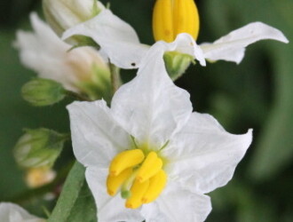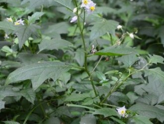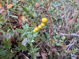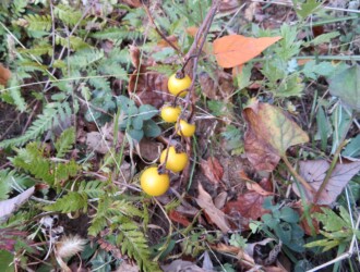 • 花期は6~10月。節間から花柄を出し、直径約2cmの白~淡紫色の花を5~10個つける。実は球形で黄色に熟す。