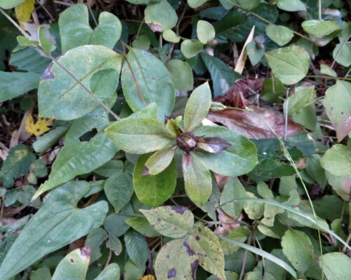 - 葉は互生し、長い柄があり3~5裂する。裂片の縁には刺状の鋸歯がある。