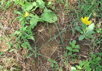• 花期は4~10月。花柄は上部で1~3本に分かれ、先端に直径3~4cmのタンポポに似た黄色の花をつける。