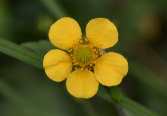 - 花期は6~8月。茎の上部に柄を出し、直径1~2cm、花弁が5枚の黄色の花をつける。実は球形。