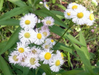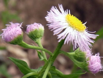 別名ハルシオン、ハルジョオン。多年草。明治維新前後に北米から入ってきた。ヒメジョオンとよく似ているが、春先から開花し、つぼみは薄桃色でうつむく。茎は中空となる。
