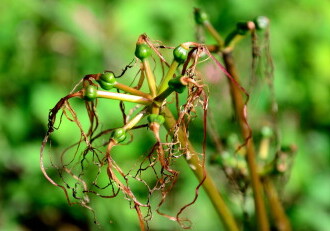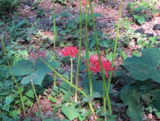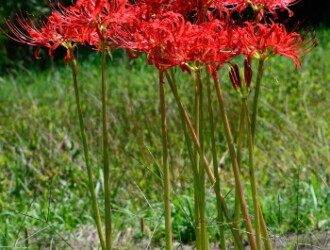 - 花期は9月。花柄の先に5~8個の赤色の花をつける。種子はできず、鱗茎で繁殖する。