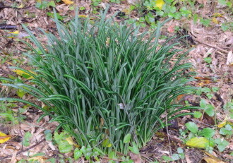 - 葉は、長さ30~60cmの線形。花後に出て越冬し、春の終わりごろに枯れるので花の時期にはない。