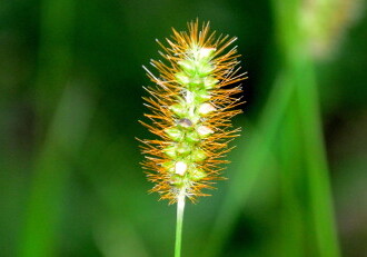 - 花期は8~10月。茎の先に長さ3~15cmの直立する円柱形の花序をつけ、長さ約3mmの小穂を多数つける。小穂の基部には黄金色の長さ7~10mmの剛毛が密にある。