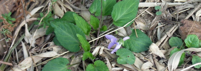 - 葉身は長さ2~5cmの三角状広卵形。葉柄は長さ2~8cm。夏の葉は大きく葉身、葉柄とも18cmほど。開花時の花柄は葉より高い。