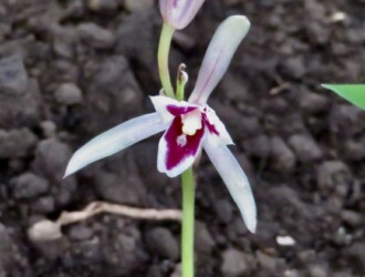 - 花期は7~8月。花は茎頂に数個まばらにつき、白色で紅紫色を帯びる。