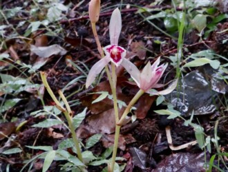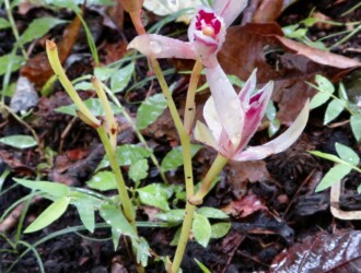 - 常緑林内に生える腐性の多年草。