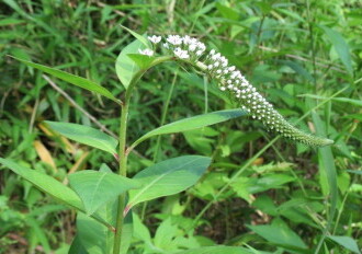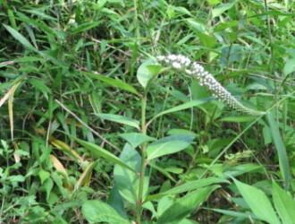 - 花期は6~7月。茎の先に長さ10~20cmの一方に傾く総状の花序をつけ、上側に小さい白色の花を密につける。実は直径2.5mmの卵球形。
