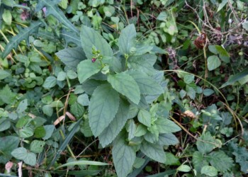 - 葉は、対生し、長さ5~10㎝、幅3~6㎝の狭三角形~長卵形。