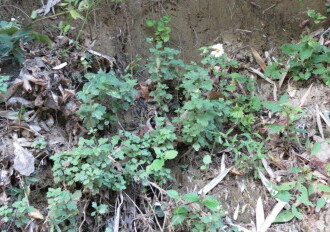 - 葉は、互生(1つずつ方向をたがえてつく)し、長さ2.5~5cm、幅1.5~4cmの卵形~広卵形で3中裂する。裏面に白い毛が密につく。