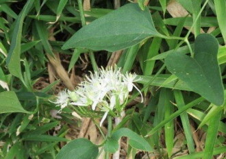 - 似た「ボタンヅル」は、葉に光沢がなく、小葉の縁に鋸歯がある。
