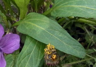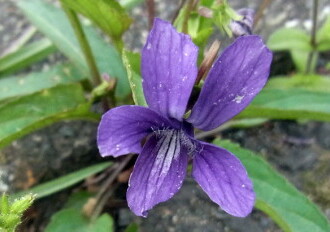 - 花期は4~5月。花は長さは20~25mmで濃紫色。日本のスミレ属はいずれも花(開放花)が終わると花弁のない閉鎖花が出てそれに種子が出来る。