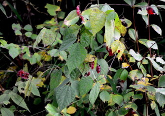 - 葉は、3小葉で互生(1つずつ方向をたがえてつく)し、頂小葉は長さ4~8cm、幅3~5cmの先のとがった卵形。