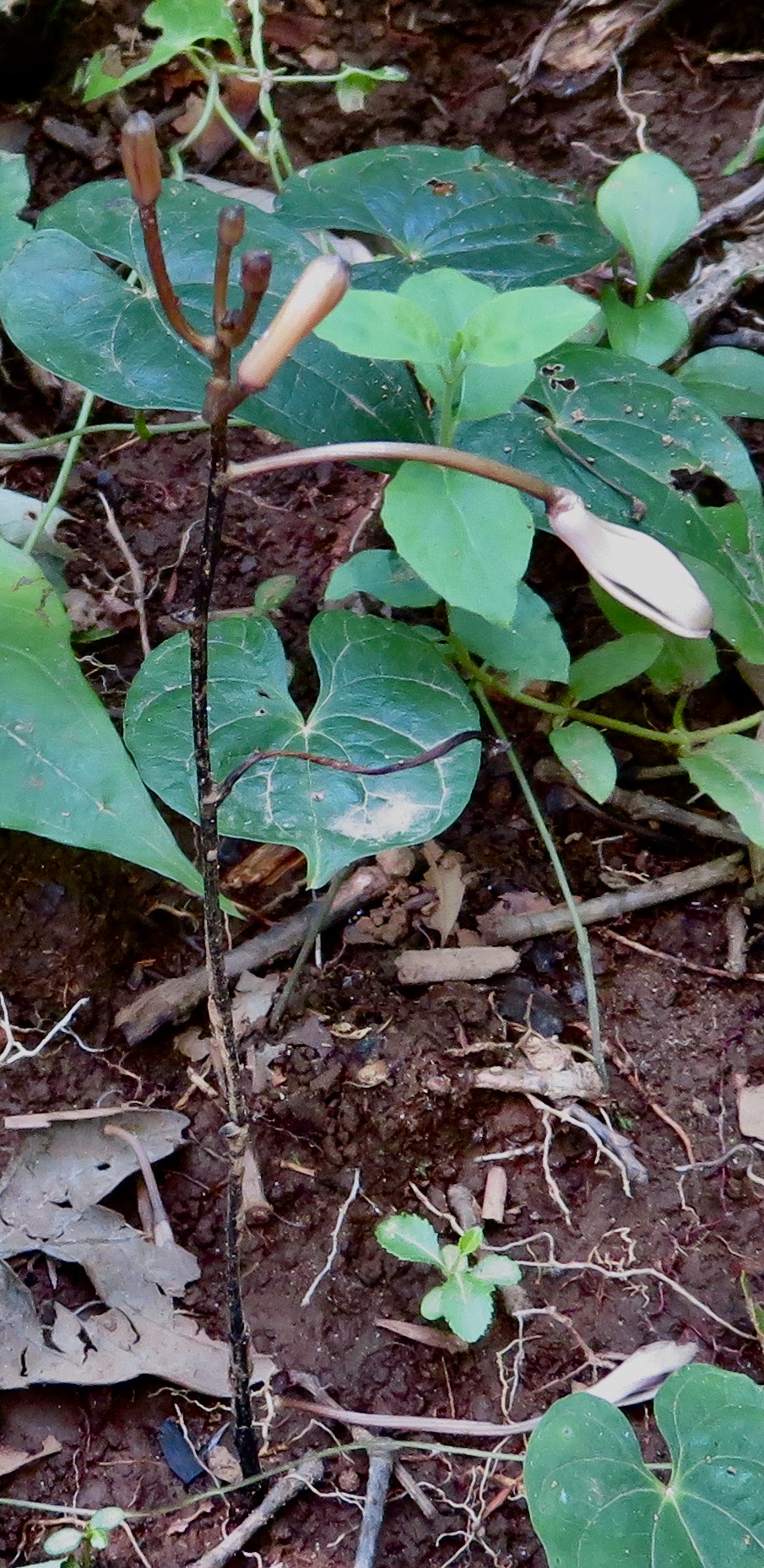 • 茎の上部に数個の花をつける。花は淡褐色~淡紫褐色。