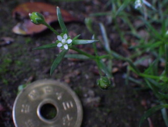 - 花は直径約4mmと小さく、葉腋に1個ずつつく。