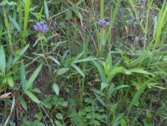 - 花期は6~8月。茎先に花穂をつけ、紫色の花をつける。