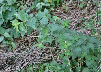 - 葉は、対生し、長さ3~6㎝、幅2~3㎝の三角状卵形。葉柄はひれ状。