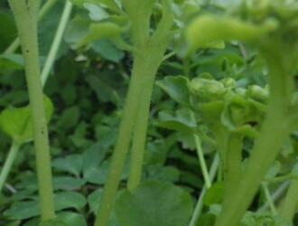 - 茎の基部に花が終わると小さな汚紫色のむかごができる。