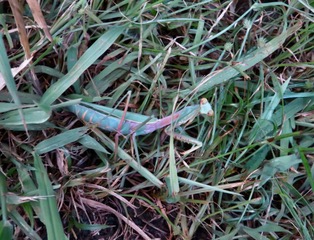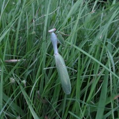 - 在来種のハラビロカマキリより大型で、胸に赤みがあるのが特徴。