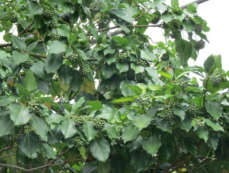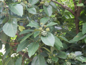 - 花期は6~7月。果期は10~11月。枝先に花序を1~5つけ、黄緑色の小さな花を多数つける。実は長さ約8mmの広楕円形で熟すと黒くなる。