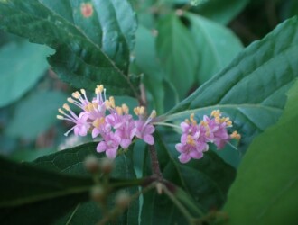 - 被子植物、真正双子葉類、シソ目、シソ科(クマツヅラ科)の落葉低木。別名「ミムラサキ」。漢字名「紫式部」