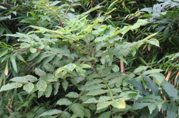 - ヌルデの葉にはヌルデシロアブラムシ が寄生し、虫こぶ(虫?)を作ることがある。
