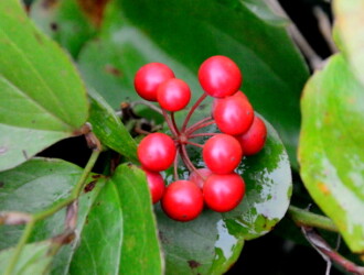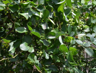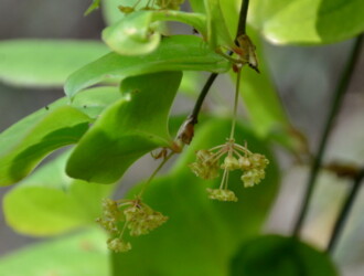 - 花期は4~5月。果期は10~11月。葉の腋から花序をだし、淡黄緑色の小さな花を多数つける。実は直径7~9mmの球形で、10~11月に朱赤色に熟す。