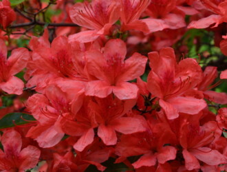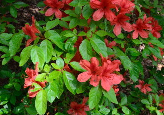 - 花期は4~6月。枝先に直径約4~5cmのろうと形で、赤、朱赤、紅紫の濃いものや淡いものがある。