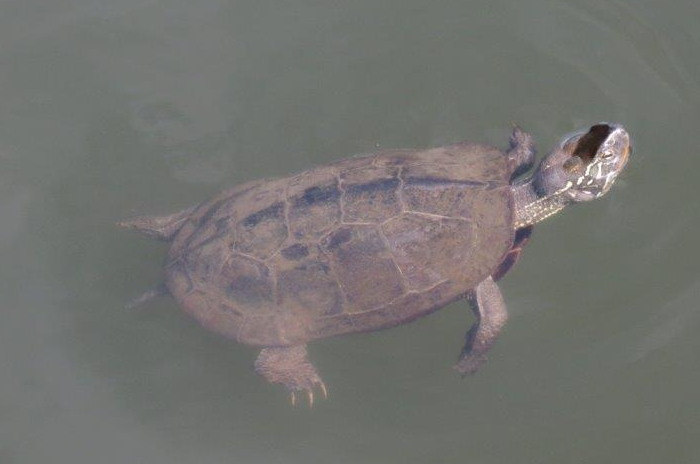 | 【生態等】 | ・脊索動物門、爬虫綱、カメ目、イシガメ科。 ・独特の臭気を出すので、「臭(くさ)ガメ」という。 ・日本のものは外来種である可能性がある。 ・川や池などに生息する。 ・最大甲長オス20cm、メス30cm。 ・背甲には3列のキール(すじ状に盛り上がったところ)がある。 ・頭から首筋に黄緑色のすじがある。 ・食性は、雑食。 ・分布は、北海道、本州、四国、九州、南西諸島。 |