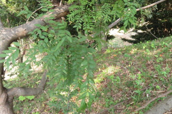 | 【生態等】 | ・被子植物、真正双子葉類、ムクロジ目、ミカン科(ミカン科)の落葉低木。漢字名「 犬山椒」。 ・山野に生える。 ・高さは2〜3m。枝に互生(1つずつ方向をたがえてつく)するトゲがあり、老木ではこれがコブ状の突起に変わり、ゴツゴツする。 ・葉は互生し、小葉は長さ2〜4pで11〜23枚あり、全体の長さは5〜15p。 ・花期は6〜7月、果期は10〜11月。雌雄異株。枝先に花序(花をつける枝)をだし、淡緑色の小花を多数つける。実は長さ4〜6mmの球形で赤褐色に熟し、2つに割れて、球形で硬い光沢をもつ黒い種子を出す。 ・分布は本州、四国、九州。朝鮮半島、中国。 ・サンショウに似るが、香りが少なく、刺が互生(サンショウは対生)する。 |