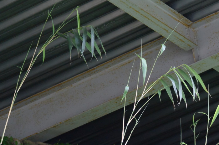 | 【生態等】 | ・被子植物、単子葉類、イネ目、イネ科(イネ科) ・タケに似ているがササの仲間。多年生。 ・丘陵地や人里近くに生える。 ・高さは2〜4m。 ・葉は、先の方でややたれ下がる。 ・節からは3〜9本の枝が出る。 ・分布は、本州〜九州。 |