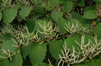 | 【生態等】 | ・被子植物、真正双子葉類、ナデシコ目、タデ科(タデ科)の多年草。 ・山野の斜面、土手、荒地などに生える。 ・高さは50〜150cm。茎は中空で太い。 ・葉は、互生(1つずつ方向をたがえてつく)し、長さ6〜15cm、幅4〜10cmの広卵形。 ・花期は7〜10月。雌雄異株。葉のわきから花序を出し、白色の小花を多数つける。 ・分布は北海道、本州、四国、九州。 |