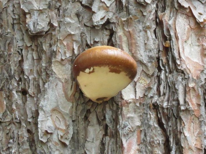 ・担子菌門、菌じん綱、ヒダナシタケ目、サルノコシカケ科の菌類。