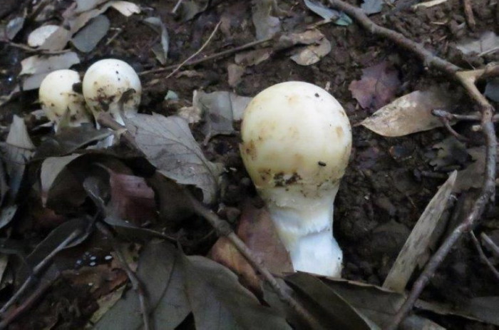 | 【生態等】 | ・担子菌門、真正担子菌綱、ハラタケ目、テングダケ科 ・傘、柄ともに白色で粉質物におおわれる。 ・傘は径7.5〜10cmで表面に大きなつぼ破片をつける。 ・柄は長さ11〜13cm。 ・根もとにつぼのとれたあとの内層が残る。 ・つばは早落生。 ・広葉樹下に発生。 ・分布は日本・韓国・中国・ネパール。 ・激しい嘔吐などの胃腸系の中毒と幻覚などの神経系の中毒を起こす。 |